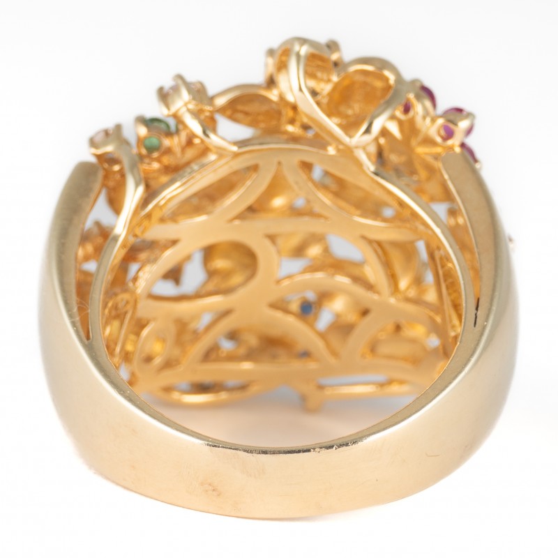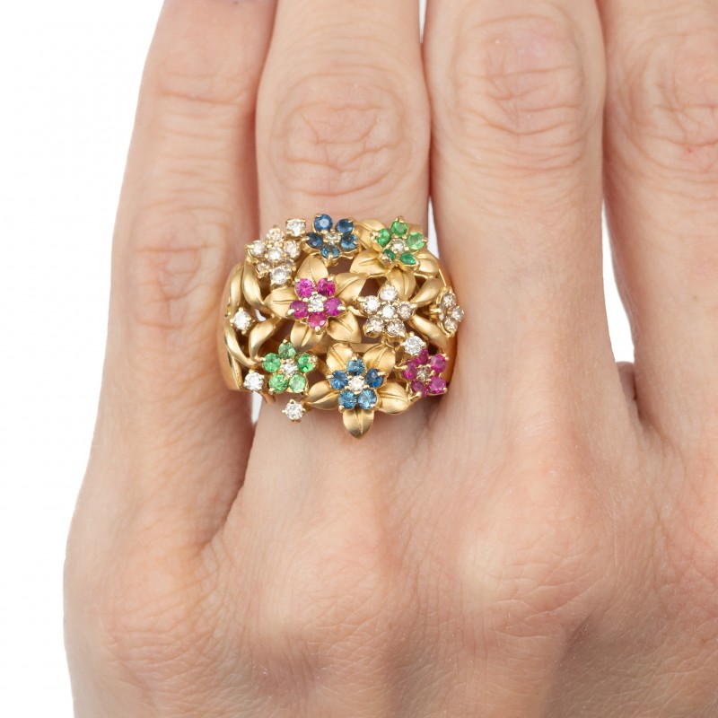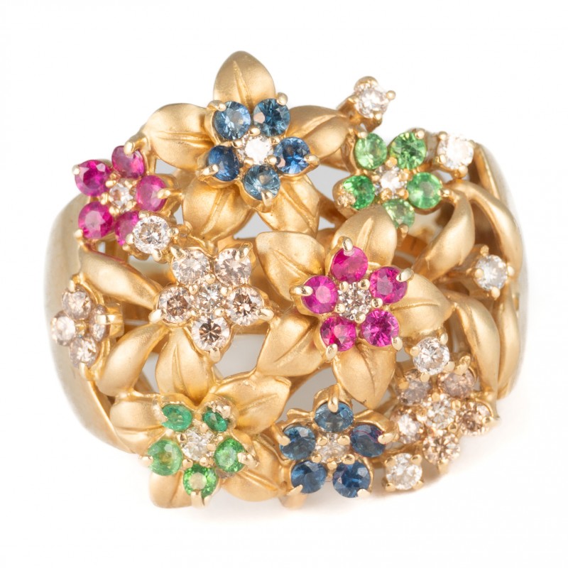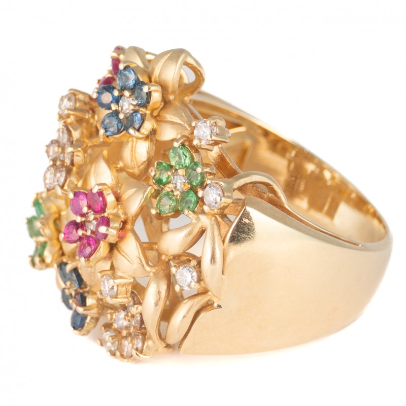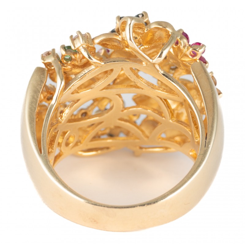 Em ouro amarelo 18K Com diamantes, safiras, rubis e tsavoritas Peso 12.4g Aro 15