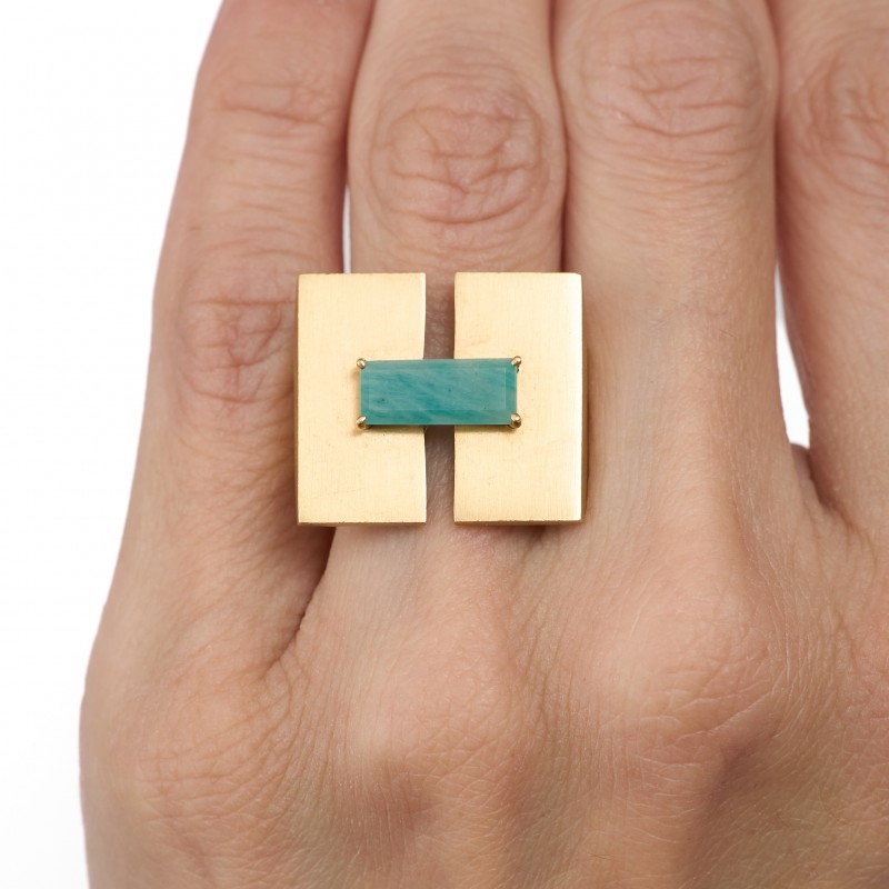 Em ouro amarelo 18K Com amazonita Peso 8.5g Aro 18
