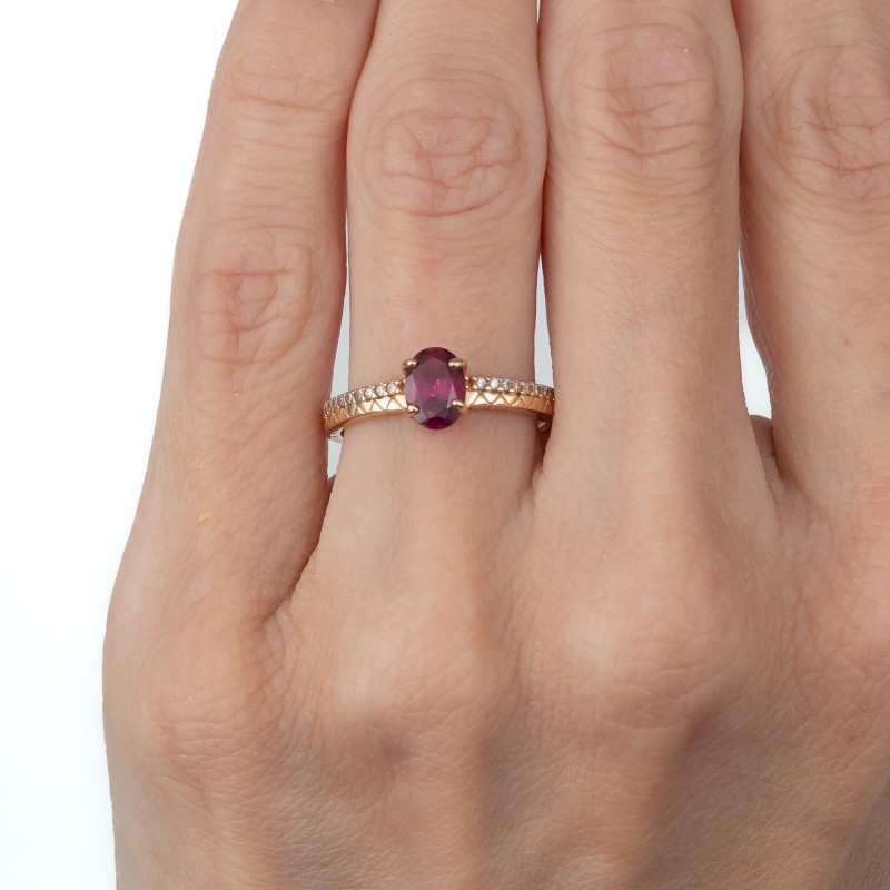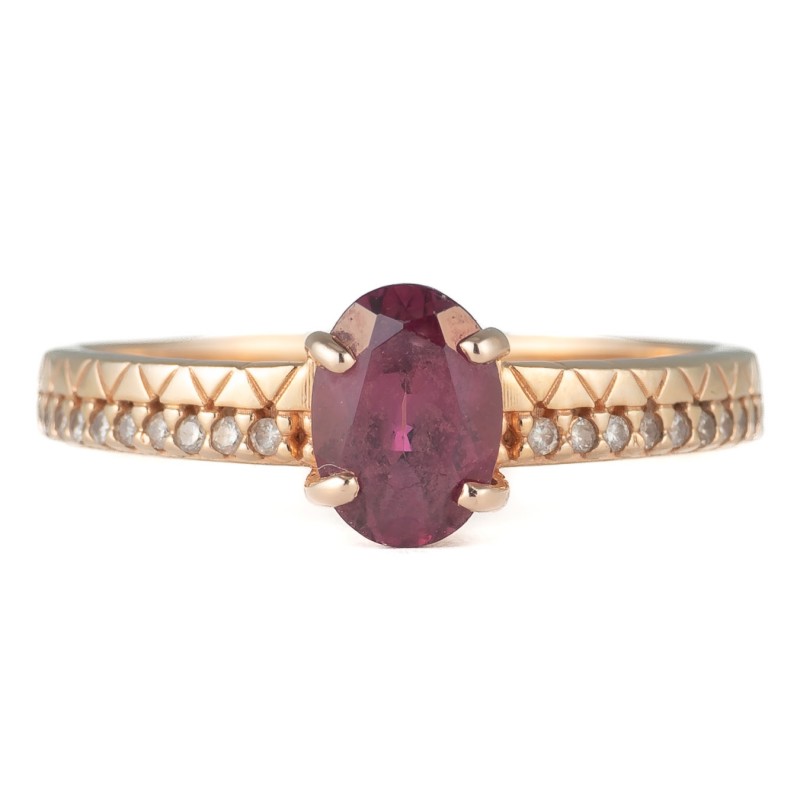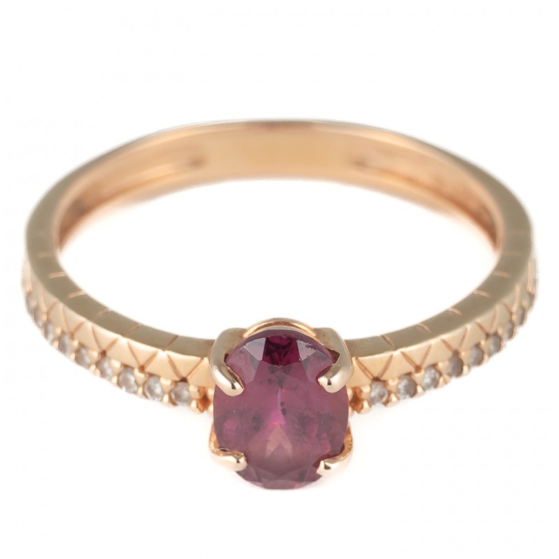 Em ouro rosé 18K Com rodolita e diamantes Peso 2.7g Aro 17