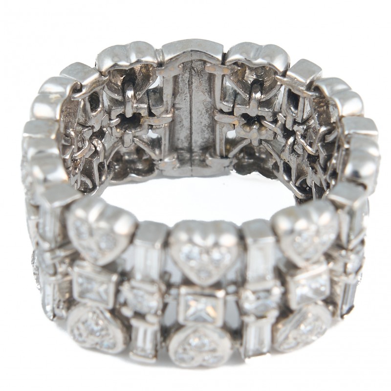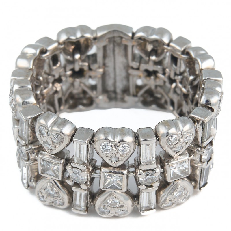 Em ouro branco 18K Com diamantes de aprox. 0.68 quilates VS1/VS2 I/J lapidação princess cut e baguetes Peso 10.2g Aro 14