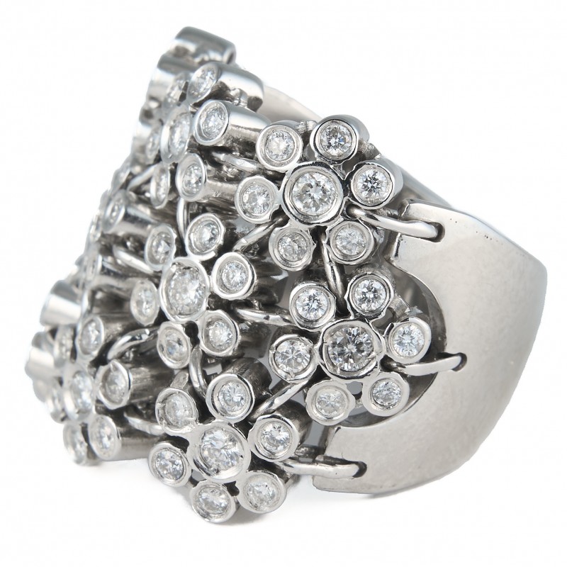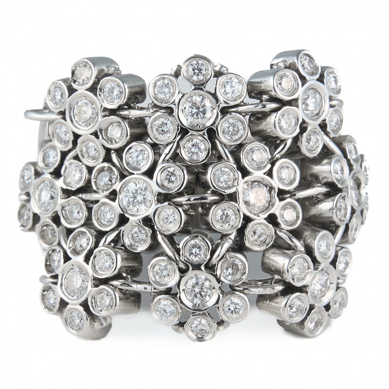 Em ouro branco 18K Com diamantes de aprox. 0.75 quilates VS1/VS2 I/J Peso 13.8g Aro 16