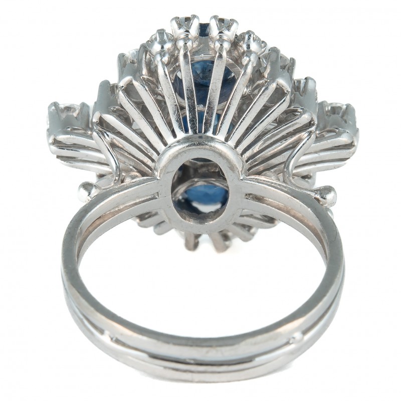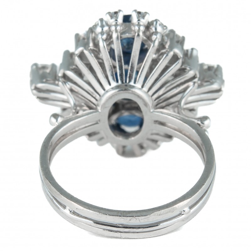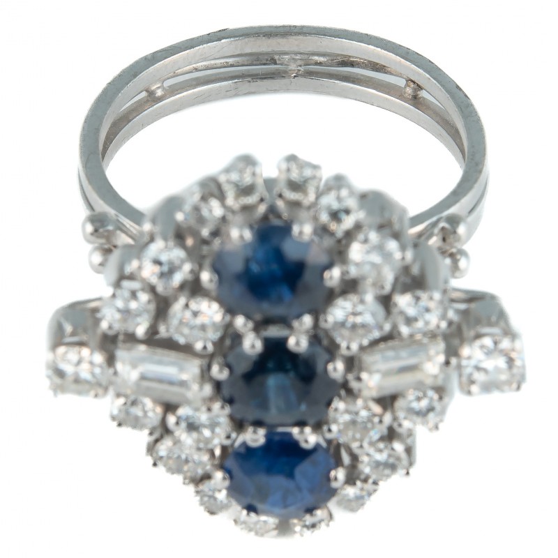 Em platina Com safiras orientais extra de aprox. 2.07 quilates e diamantes de aprox. 1.23 quilates VS/SI I/J lapidação amsterdam e baguete Peso 8.9g Aro 14