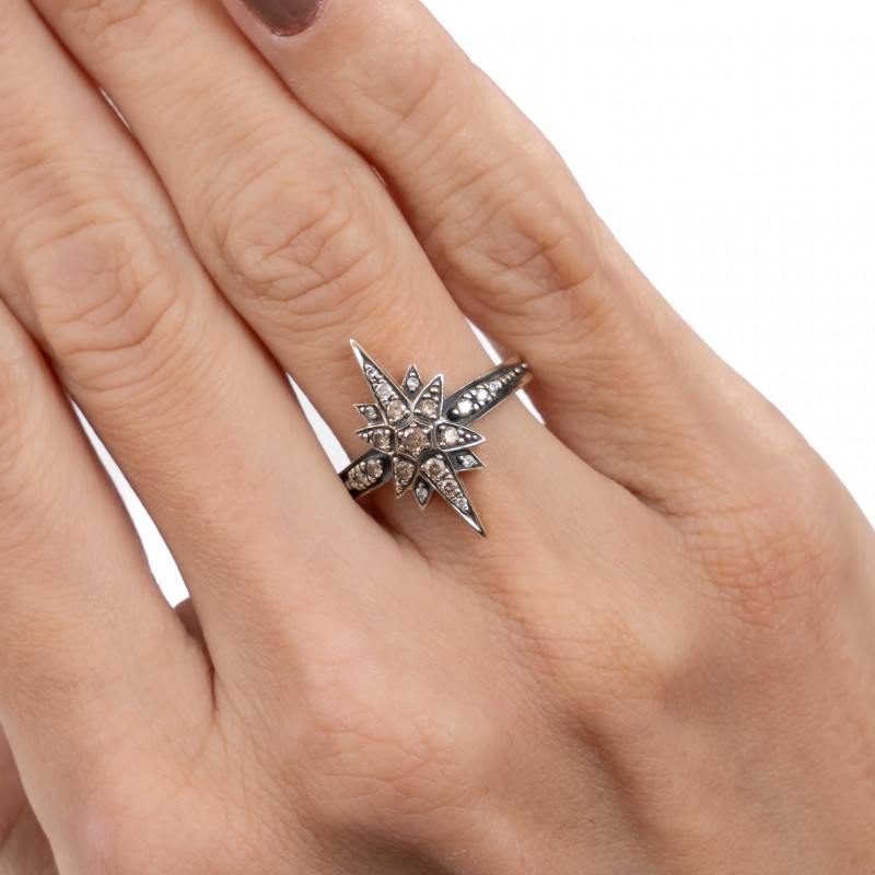 Em ouro nobre 18K Com diamantes cognac Peso 3.74g Aro 16