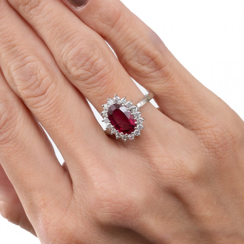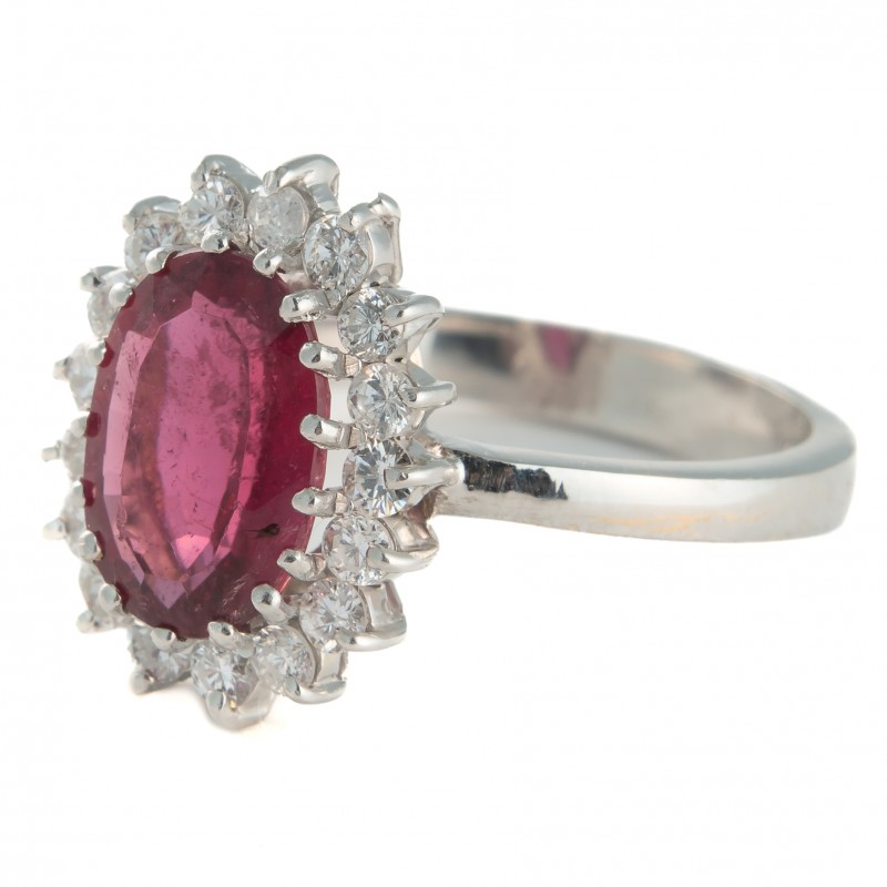 Em ouro branco 18K Com rubelita de aprox. 1.40 quilates e diamantes de aprox. 0.60 quilates VS2/SI1 K/L Peso 4.9g Aro 16
