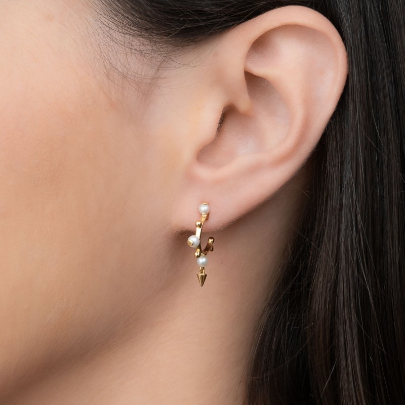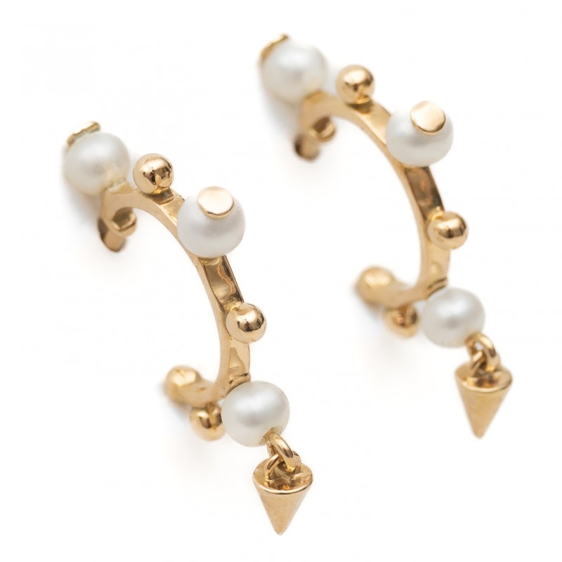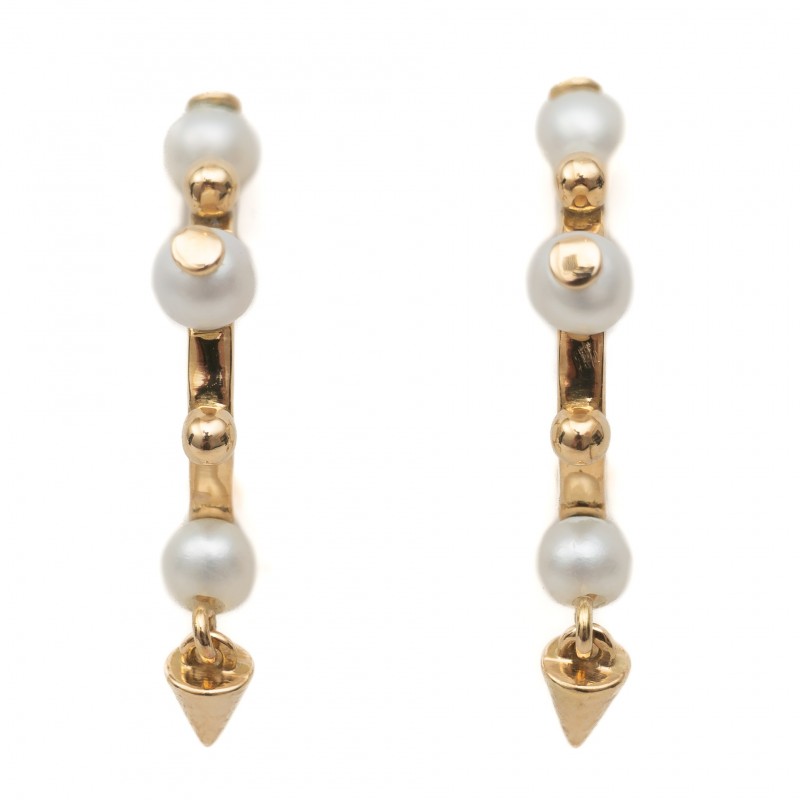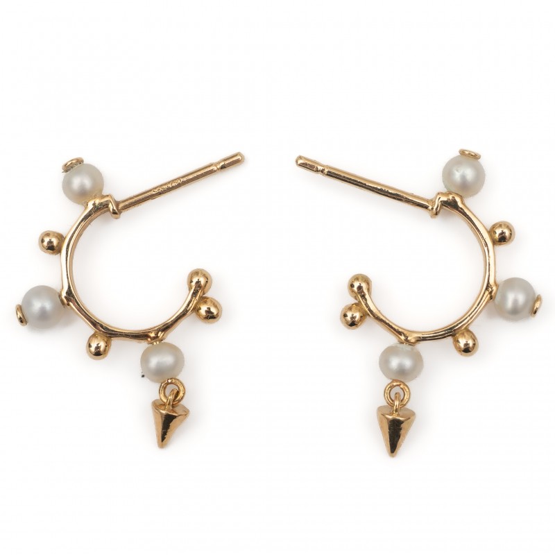 Em ouro amarelo 18K Com mini pérolas Peso 2.8g Medida 2.3cm