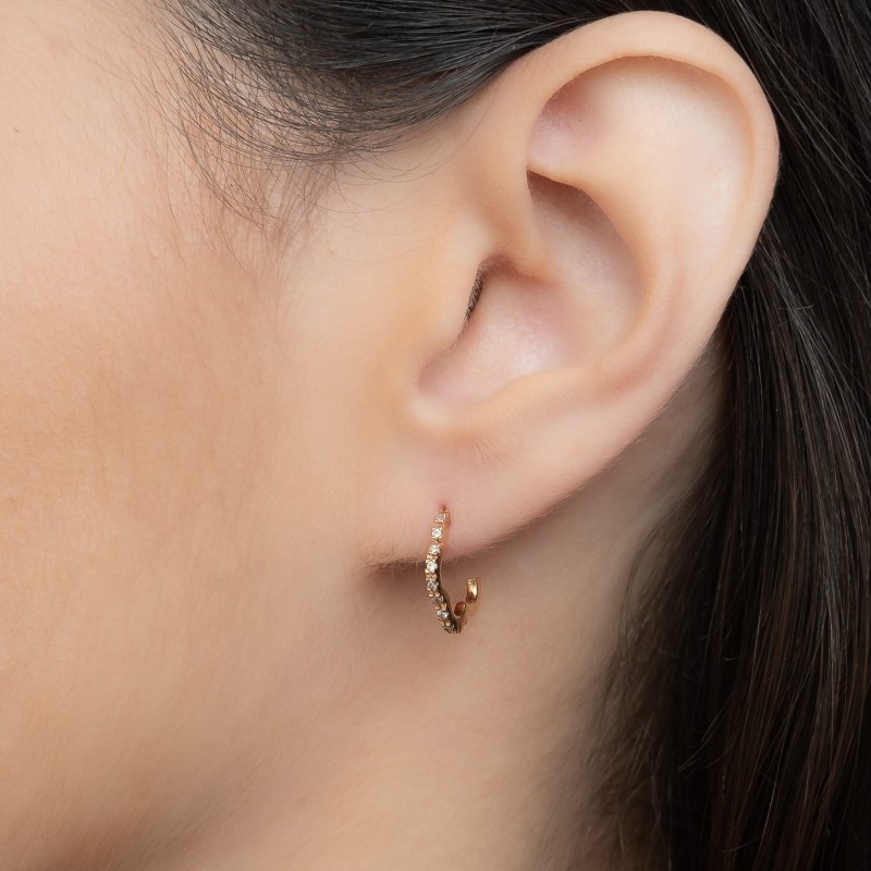 Em ouro rosé 18K Com diamantes Peso 2.3g Medida 1.4cm
