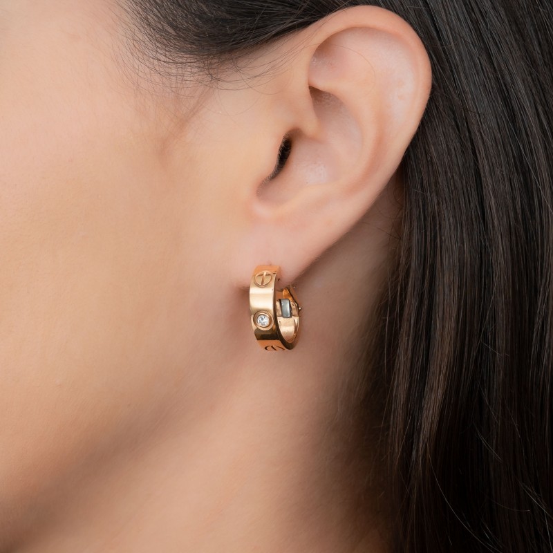 Em ouro rosé 18K Com diamantes de aprox. 0.15 quilates Peso 11.2g Medida 1.7cm