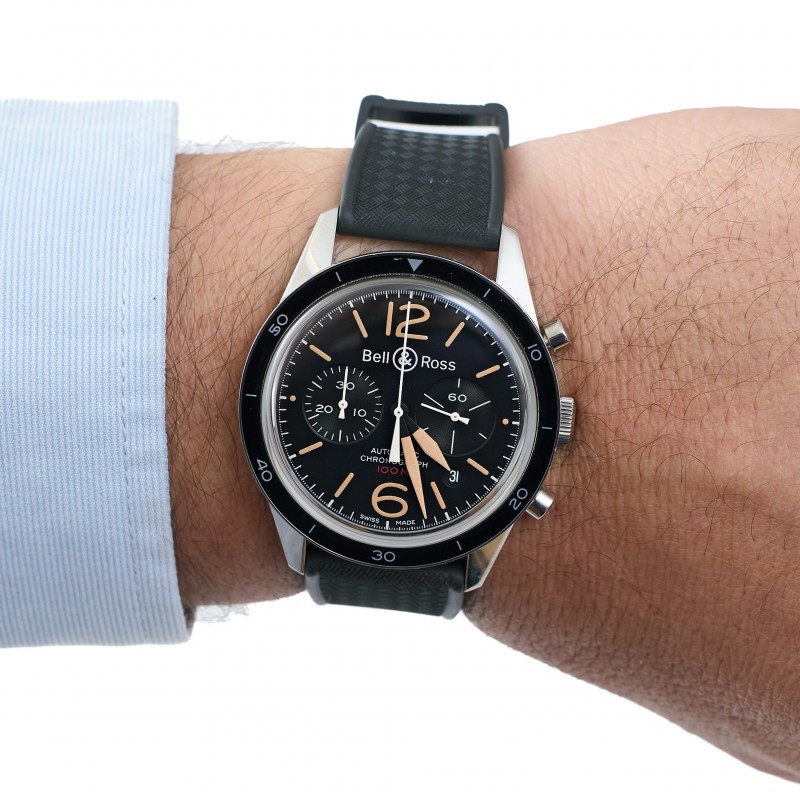 Caixa 41mm Safira Automático Cronógrafo Mostrador preto Ref. BR126-94-SP Estojo e certificado MRjoias