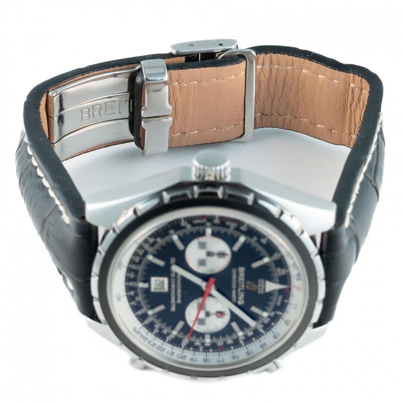 Caixa 44mm Safira Automático Cronógrafo Mostrador preto Ref. A41360 Estojo e certificado MRjoias