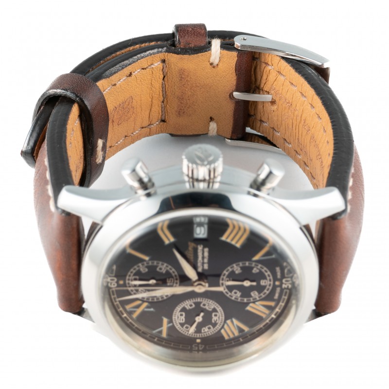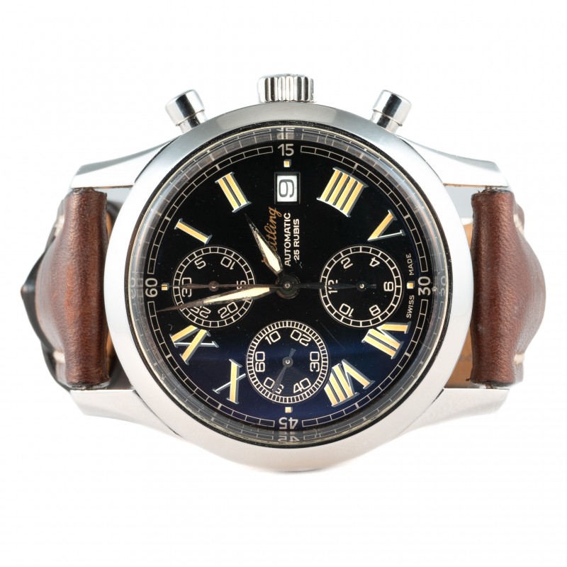 Caixa 40mm Safira Automático Mostrador preto Ref. A13024.1 Estojo e certificado MRjoias