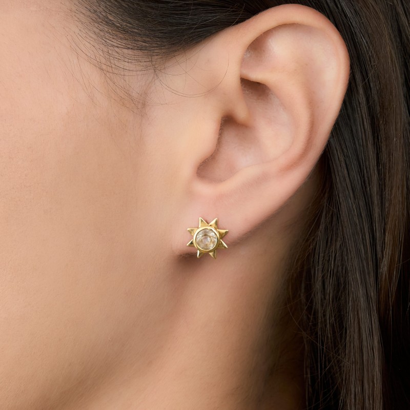 Em ouro amarelo 18K Com topázio white Peso 2.3g Medida 1cm
