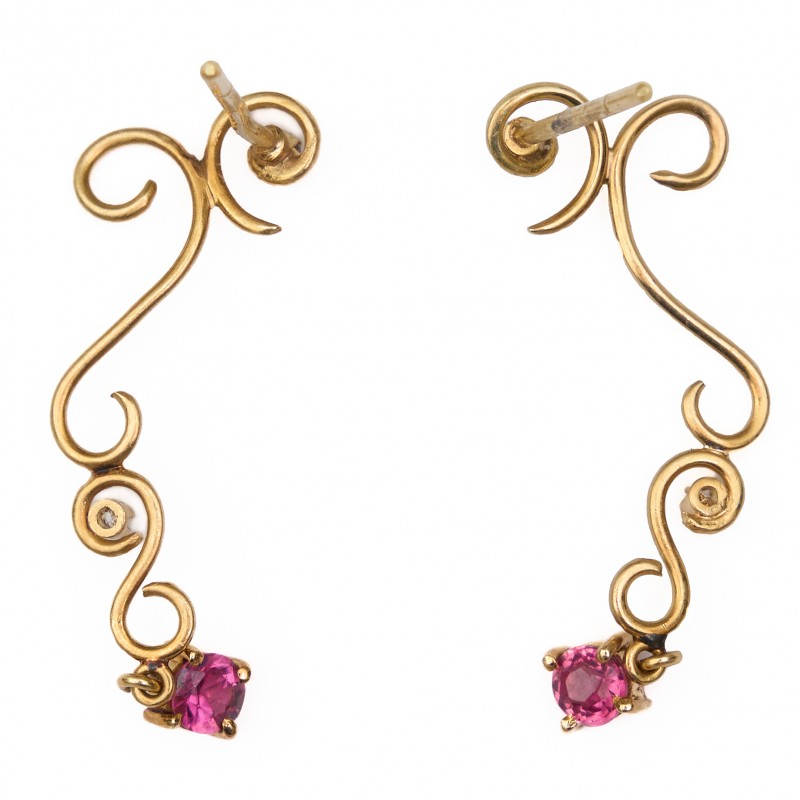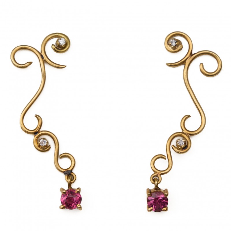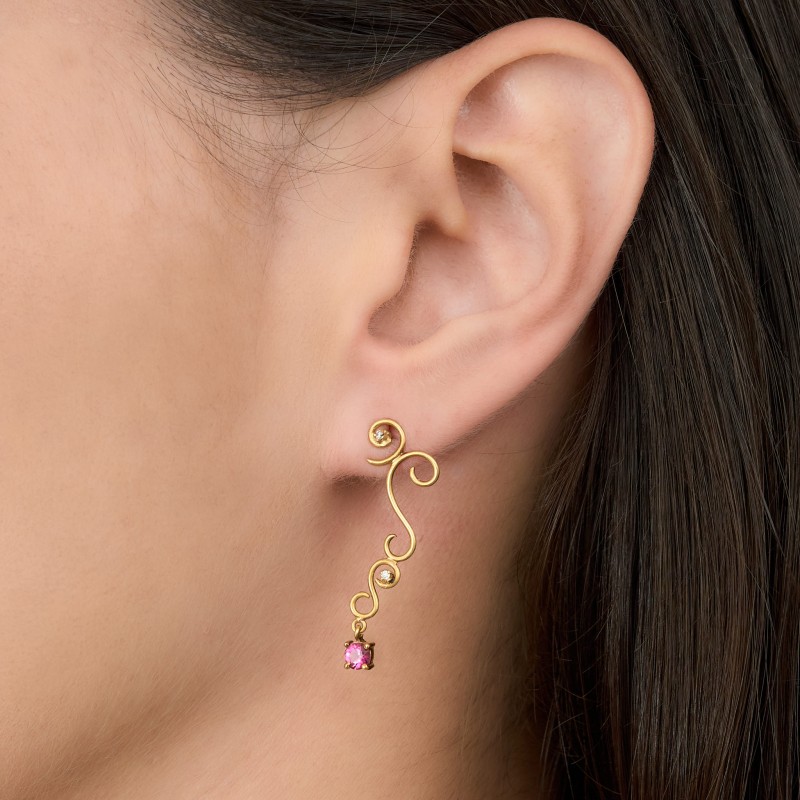 Em ouro amarelo 18K Com turmalina rosa e diamantes Peso 2.5g Medida 3.2cm