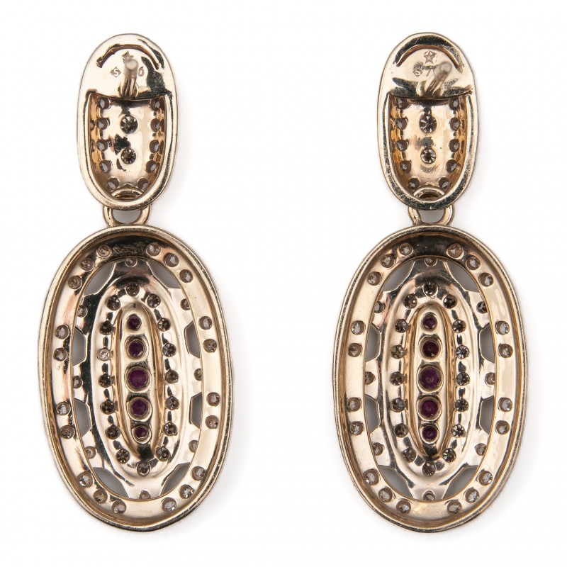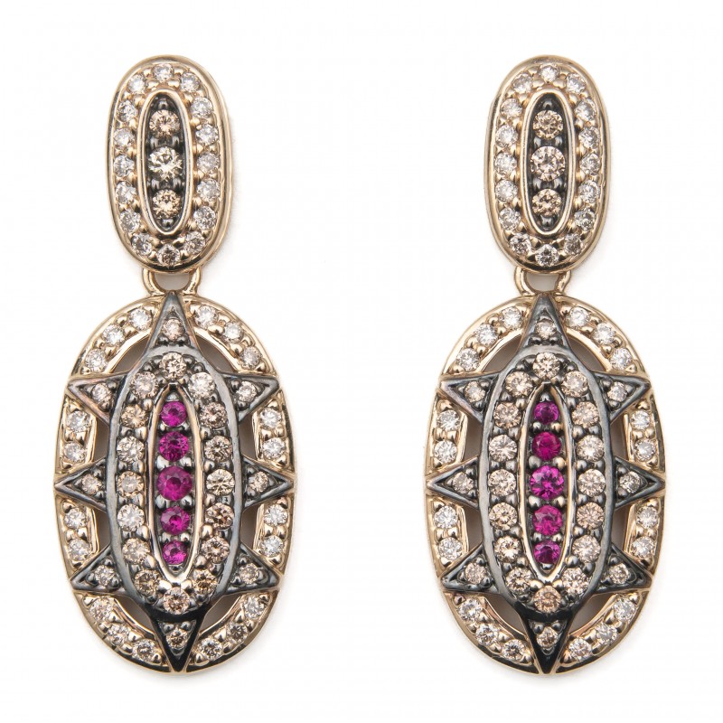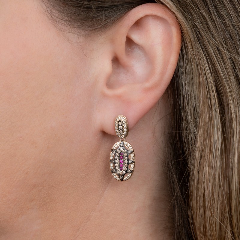 Em ouro nobre 18K Com diamantes cognacs e rubis Peso 9.6g Medida 3.2cm