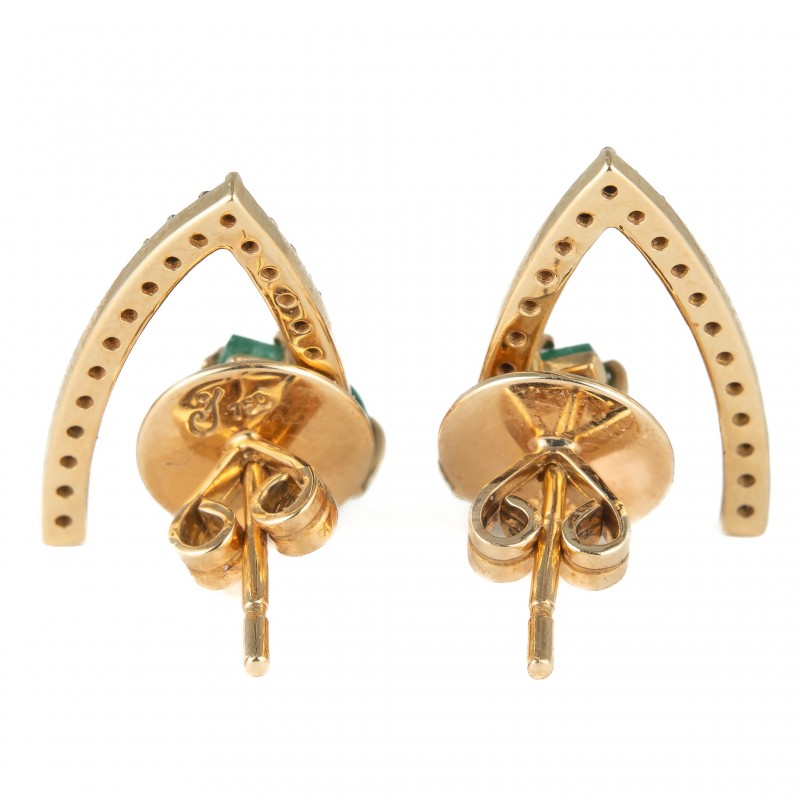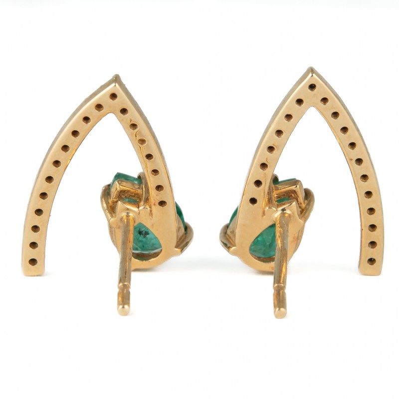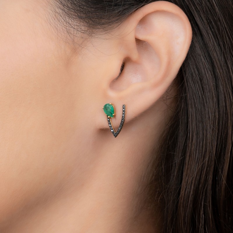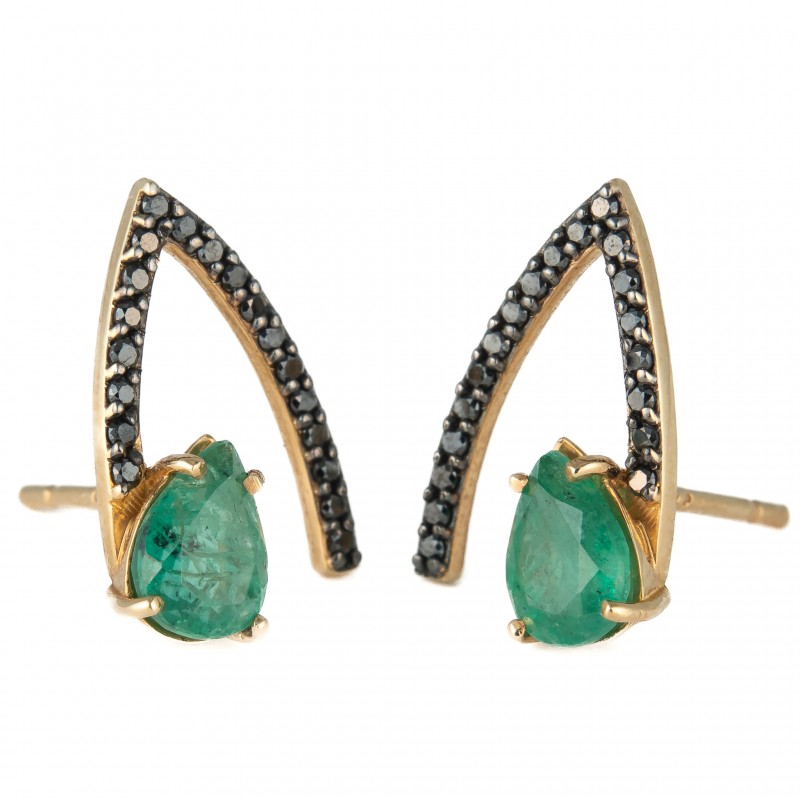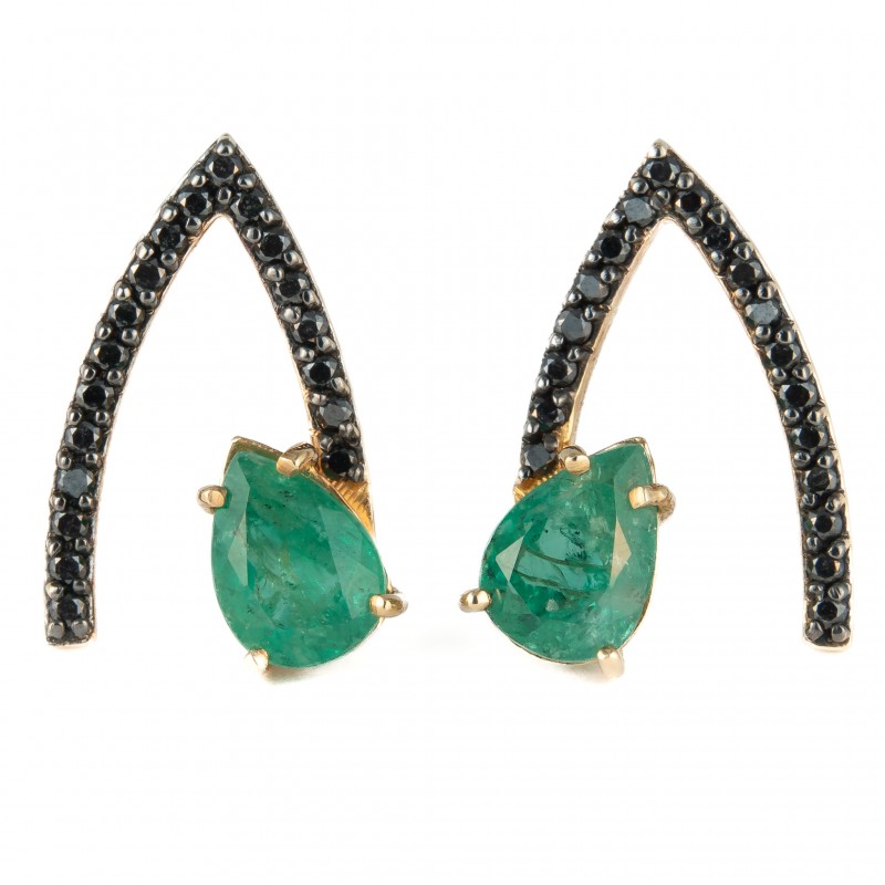 Em ouro amarelo 18K Com esmeraldas e diamantes negros Peso 3.8g Medida: 1.8cm Com tarraxas originais