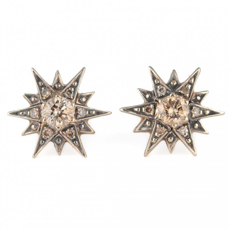 Em ouro nobre 18K Com diamantes centrais de aprox. 0.30 quilates Peso 3.2g Medida 1.2cm