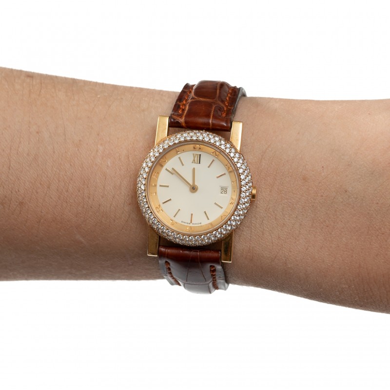 Caixa 26mm Safira Quartz Ouro 18K Com diamantes Mostrador branco Ref. AT26GL Estojo e certificado MRjoias
