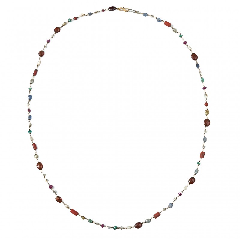 Em ouro amarelo 18K Com pedras brasileiras Peso 15.7g Medida 70cm