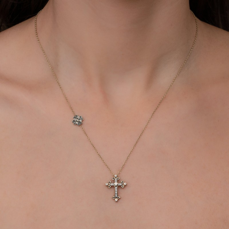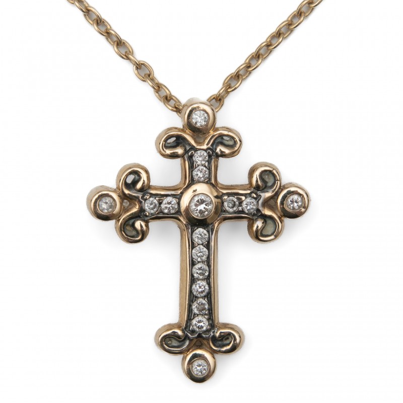 Em ouro nobre 18K Com diamantes cognacs Peso 5.2g Medida 44cm pingente 1.8cm