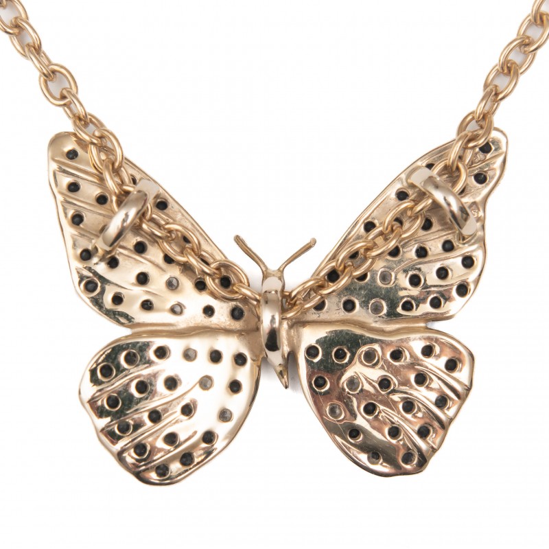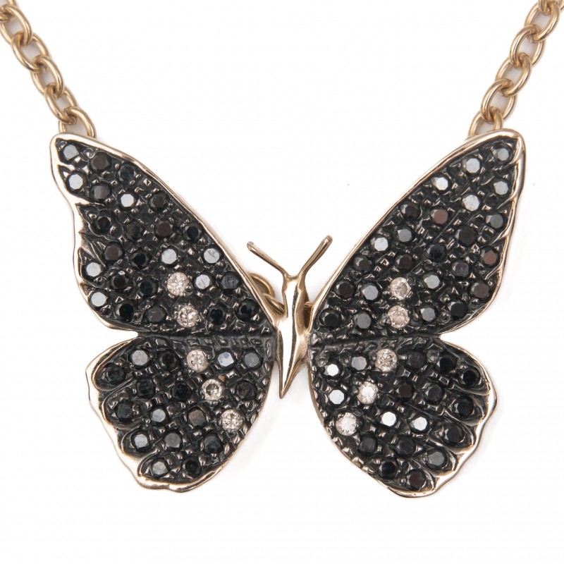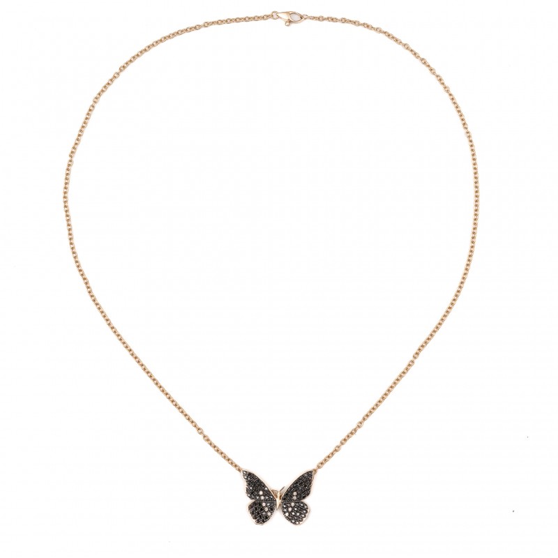 Em ouro nobre 18K Com diamantes negros e cognacs Peso 9.0g Medida 48cm Pingente 2cm