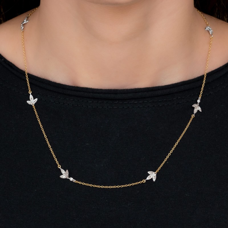 Em ouro branco e amarelo 18K Com diamantes Peso 4.5g Medida 43cm