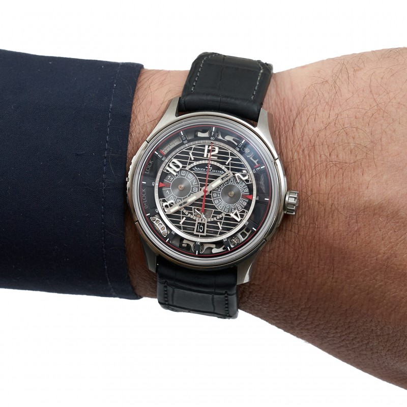 Caixa 44mm Safira Automático Alarme Cronógrafo Mostrador preto Ref. 194.T.C6 Estojo e certificado Jaeger LeCoultre