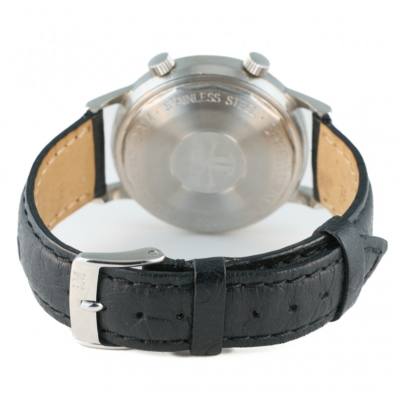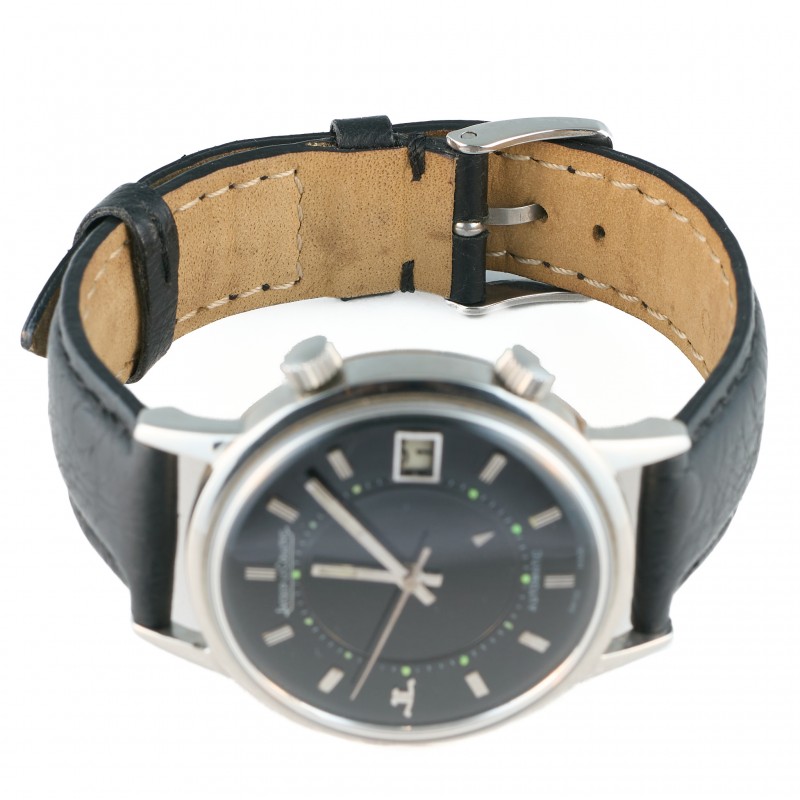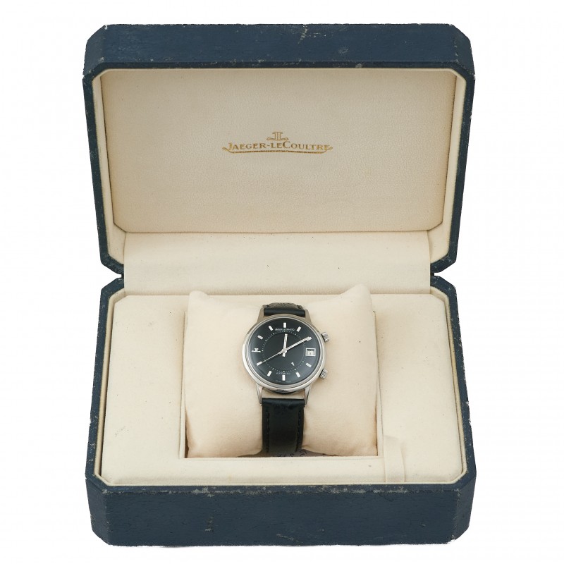 Caixa 37mm Plexiglas Automático Alarme Mostrador preto Ref. E875 Estojo Jaeger LeCoultre e certificado MRjoias