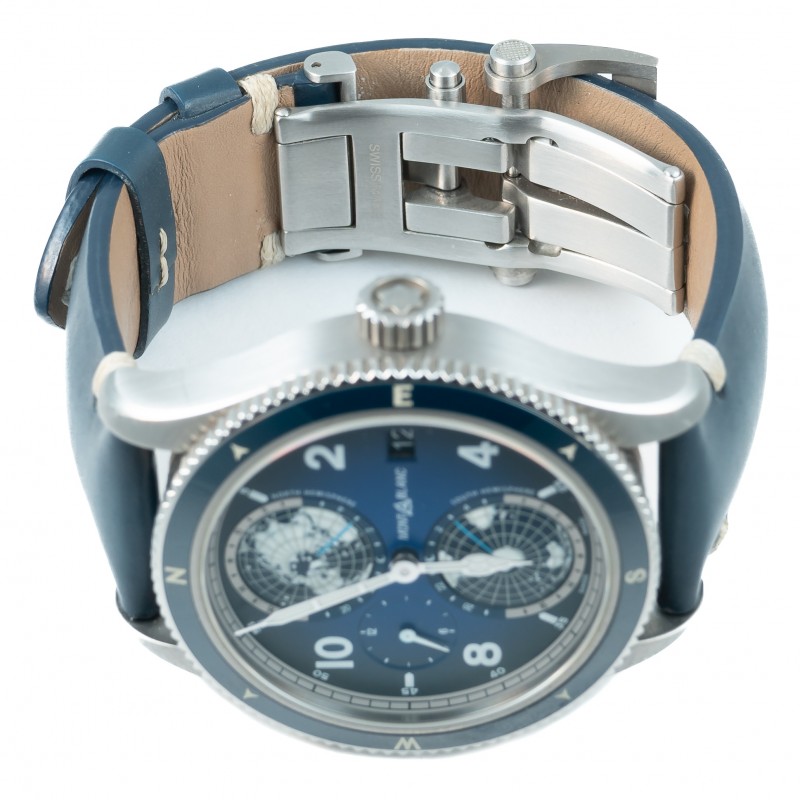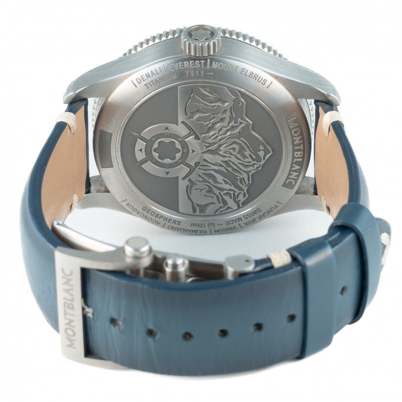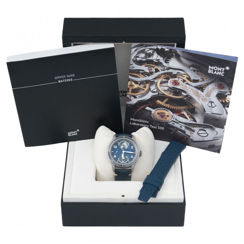 Caixa 42mm Safira Automático Cronógrafo Titânio Mostrador azul Acompanha pulseira extra Ref. 7511/129415 Estojo e certificado Montblanc