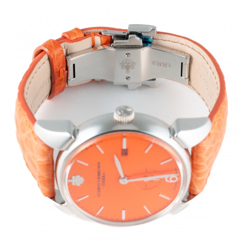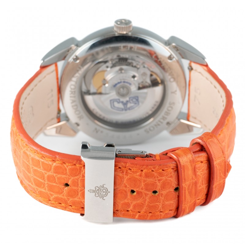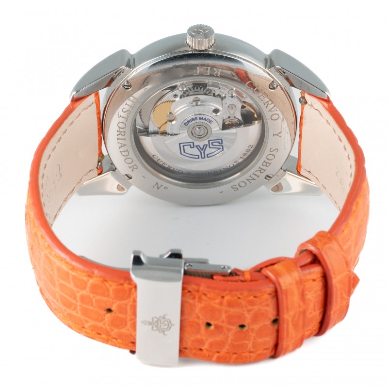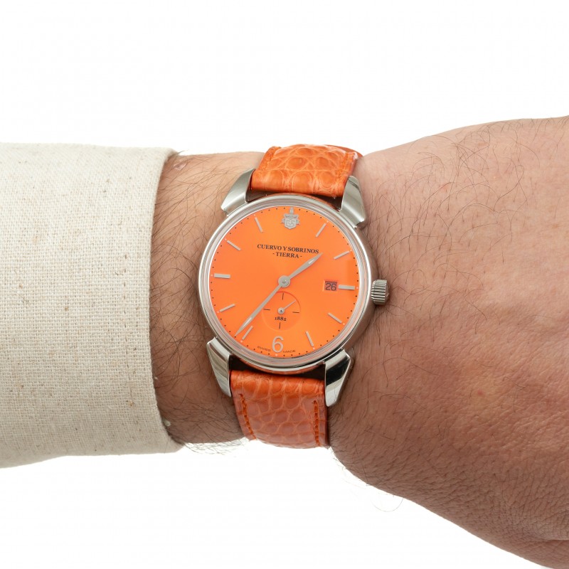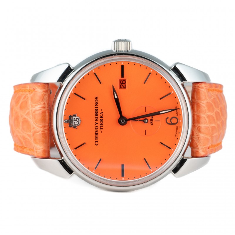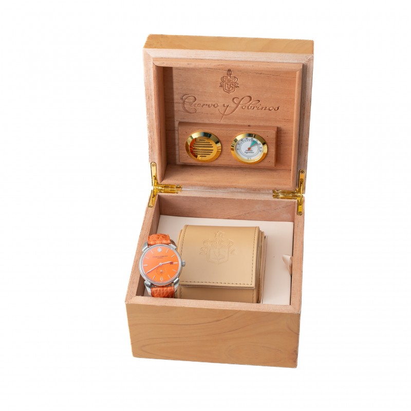 Caixa 40mm Safira Automático Mostrador laranja Ref.3191 Estojo e caixa Cuervo & Sobrinos, estilo caixa de charuto