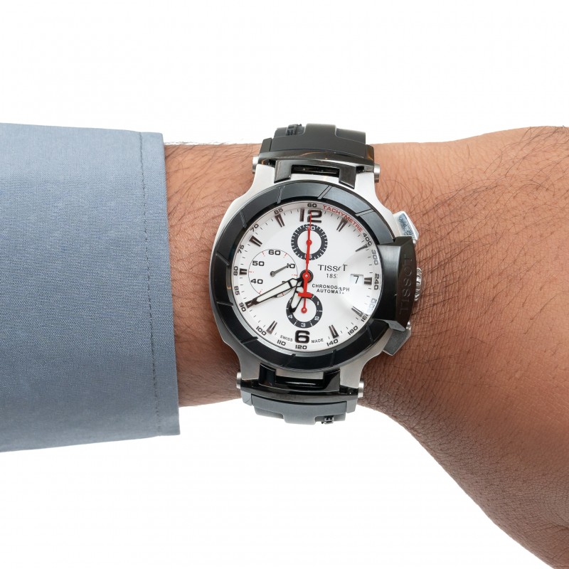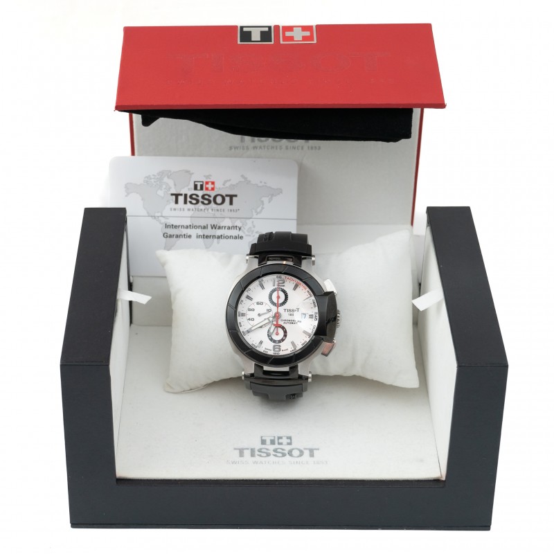 Caixa 45.3mm Safira Automático Cronógrafo Mostrador branco Ref. T048427A Estojo e certificado Tissot