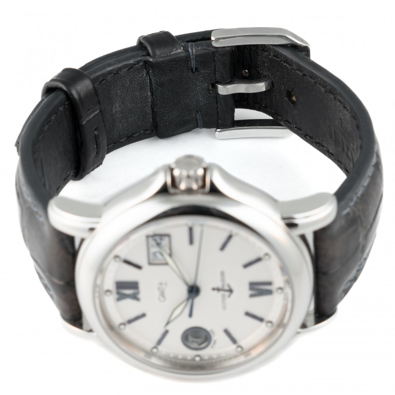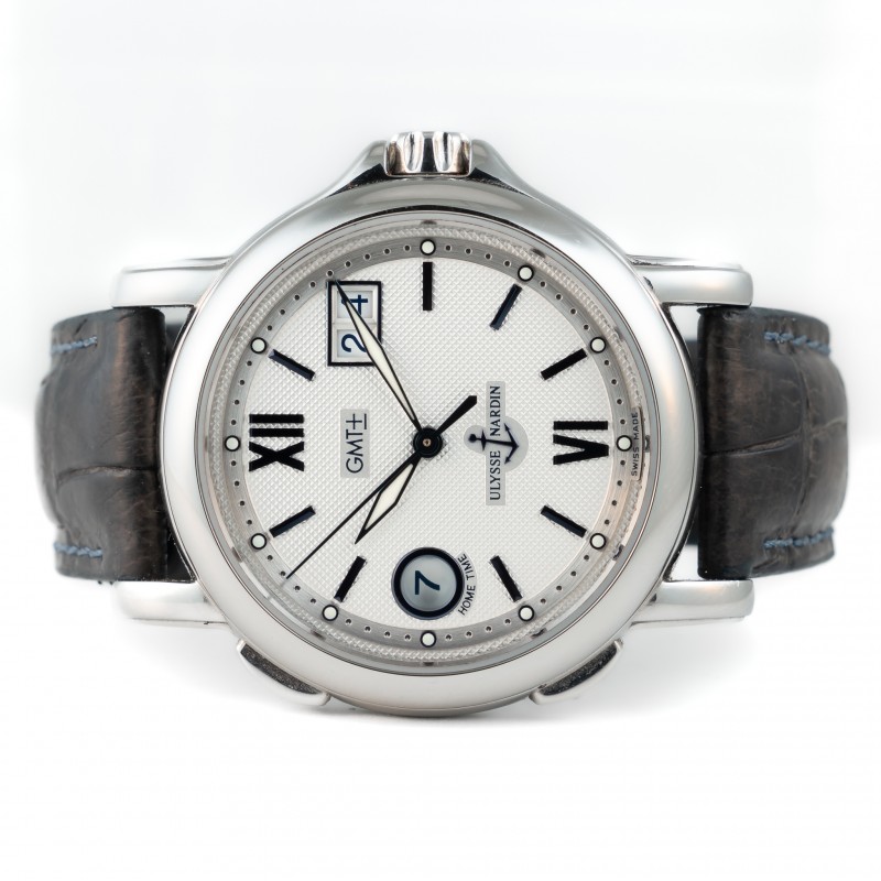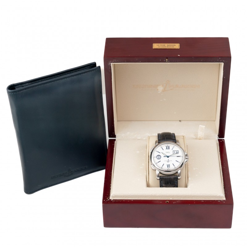 Caixa 40mm Safira Automático Hometime Mostrador prata Ref. 223-88 Estojo e carteira com manual Ulysse Nardin, e certificado MRjoias