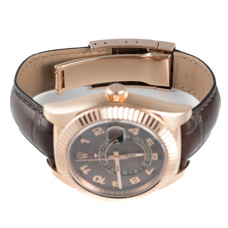 Caixa 42mm Safira Automático Ouro rosé 18K Mostrador chocolate Ref. 326135 Estojo MRjoias e certificado Rolex