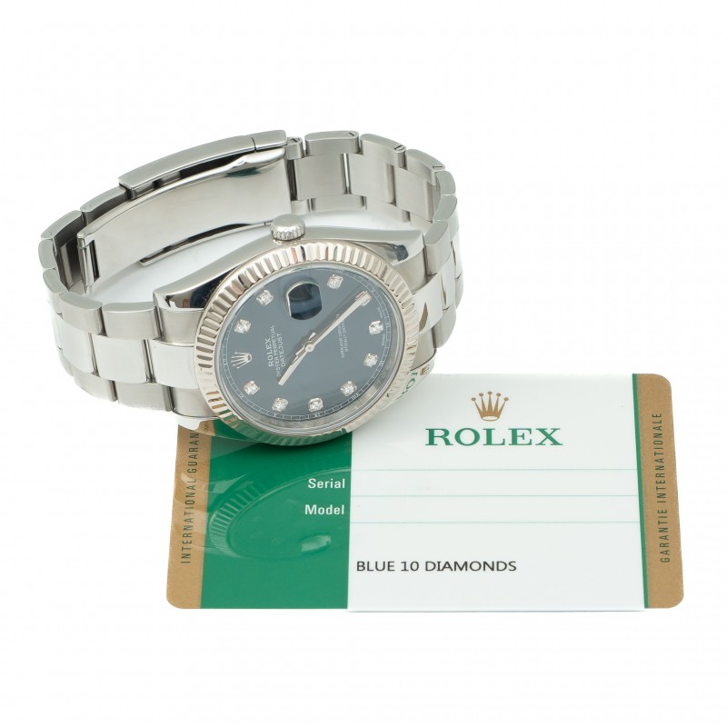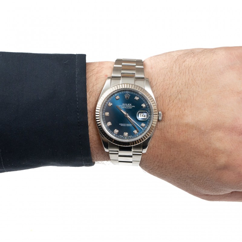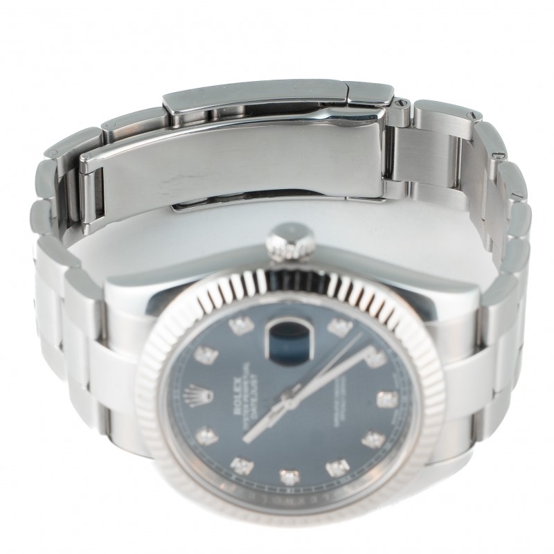 Caixa 41mm Safira Automático Bezel em ouro branco 18K Mostrador azul com diamantes Ref. 123334 Estojo MRjoias e certificado Rolex