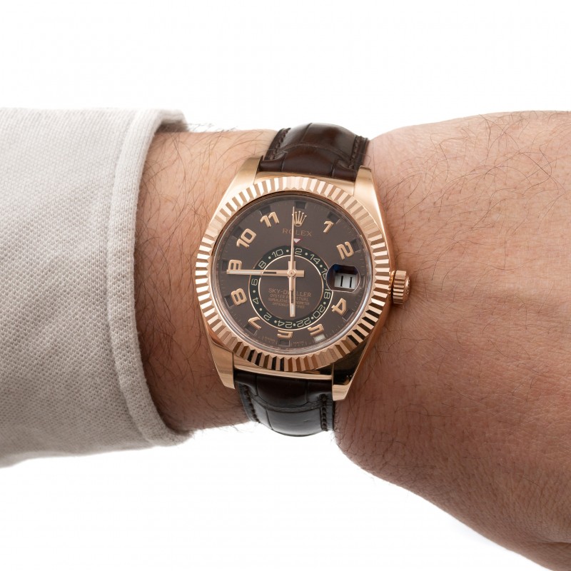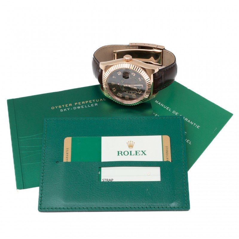 Caixa 42mm Safira Automático Ouro rosé 18K Mostrador chocolate Ref. 326135 Estojo MRjoias e certificado Rolex