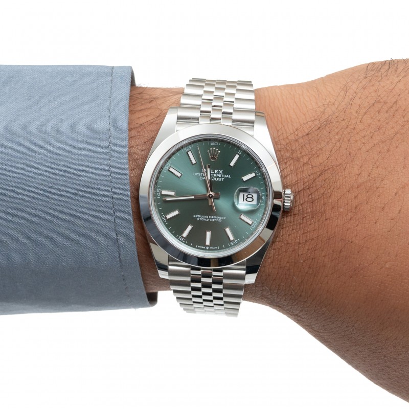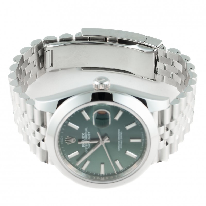 Caixa 41mm Safira Automático Mostrador Mint Green Pulseira julibeu Ref. 126300 Estojo MRJoias e certificado Rolex