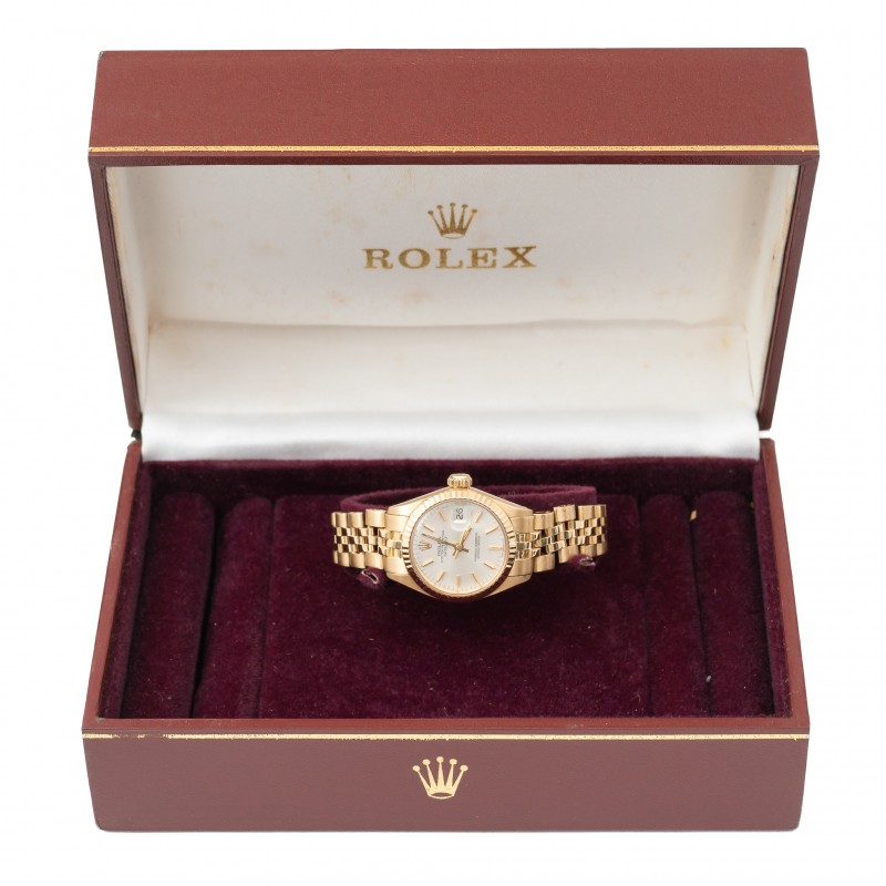 Caixa 26mm Plexiglas Automático Mostrador prata Em ouro 18K Ref: 6917 Estojo Rolex e certificado MRjoias