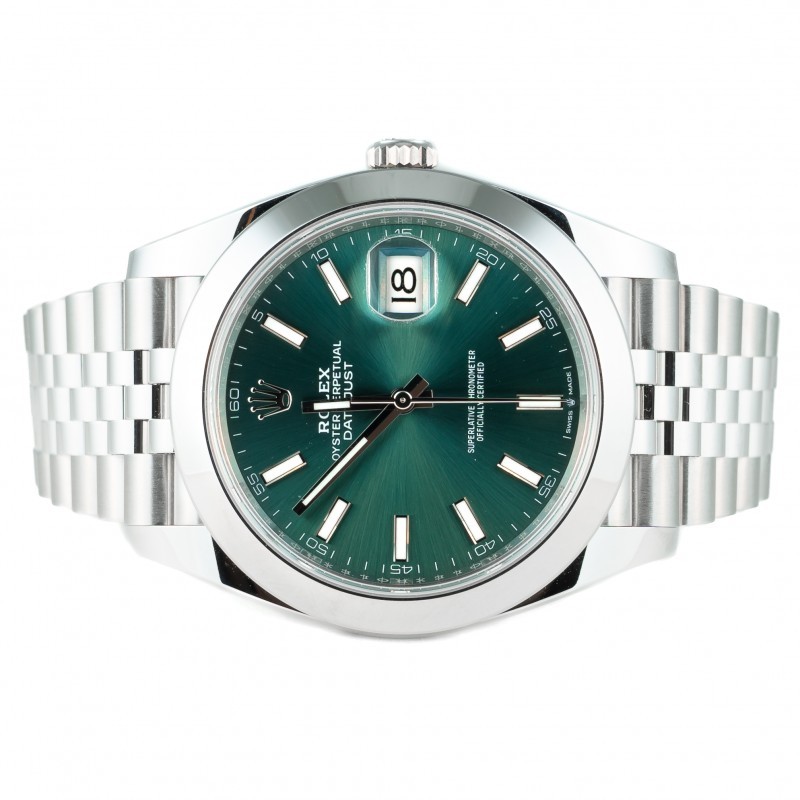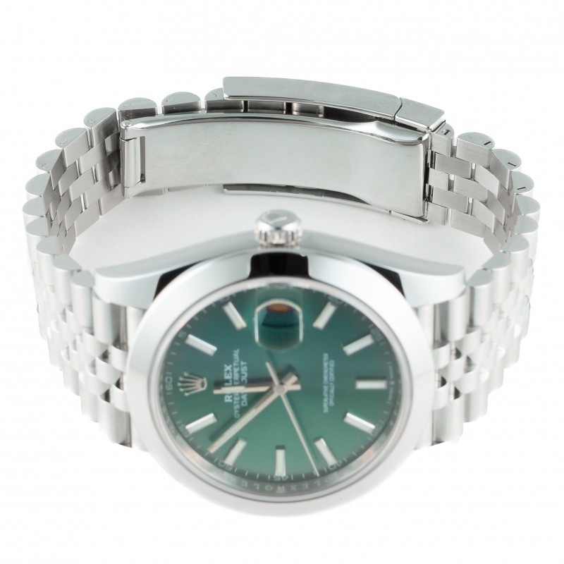 Caixa 41mm Safira Automático Mostrador Mint Green Pulseira julibeu Ref. 126300 Estojo MRjoias e certificado Rolex Garantia Rolex até 2031 Novo!