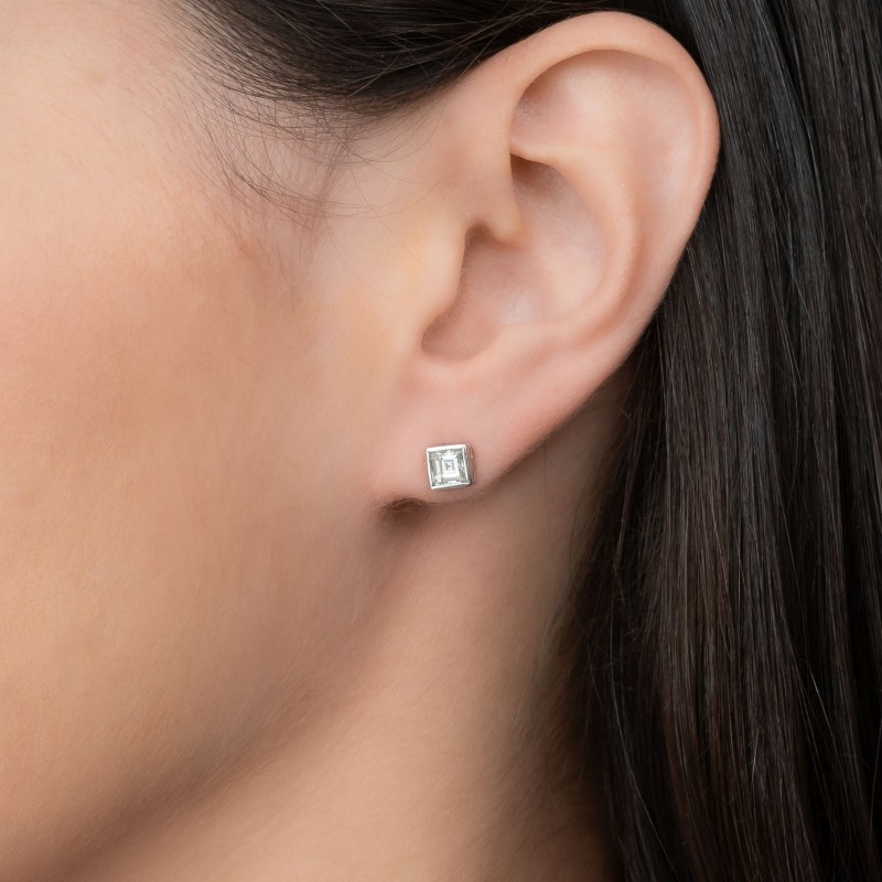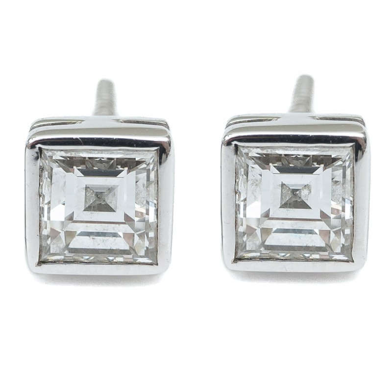 Em ouro branco 18K Com diamantes de aprox. 1.0 quilates VS1/I lapidação princess Peso 2.4g Medida 0.5cm
